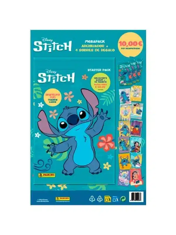 Lilo & Stitch Cartón (Álbum + 4 Sobres) Stitch Disney TC – Panini Cromos. Un imprescindible para los coleccionistas de Lilo & Stitch. Este pack incluye el álbum de cromos junto con 4 sobres,