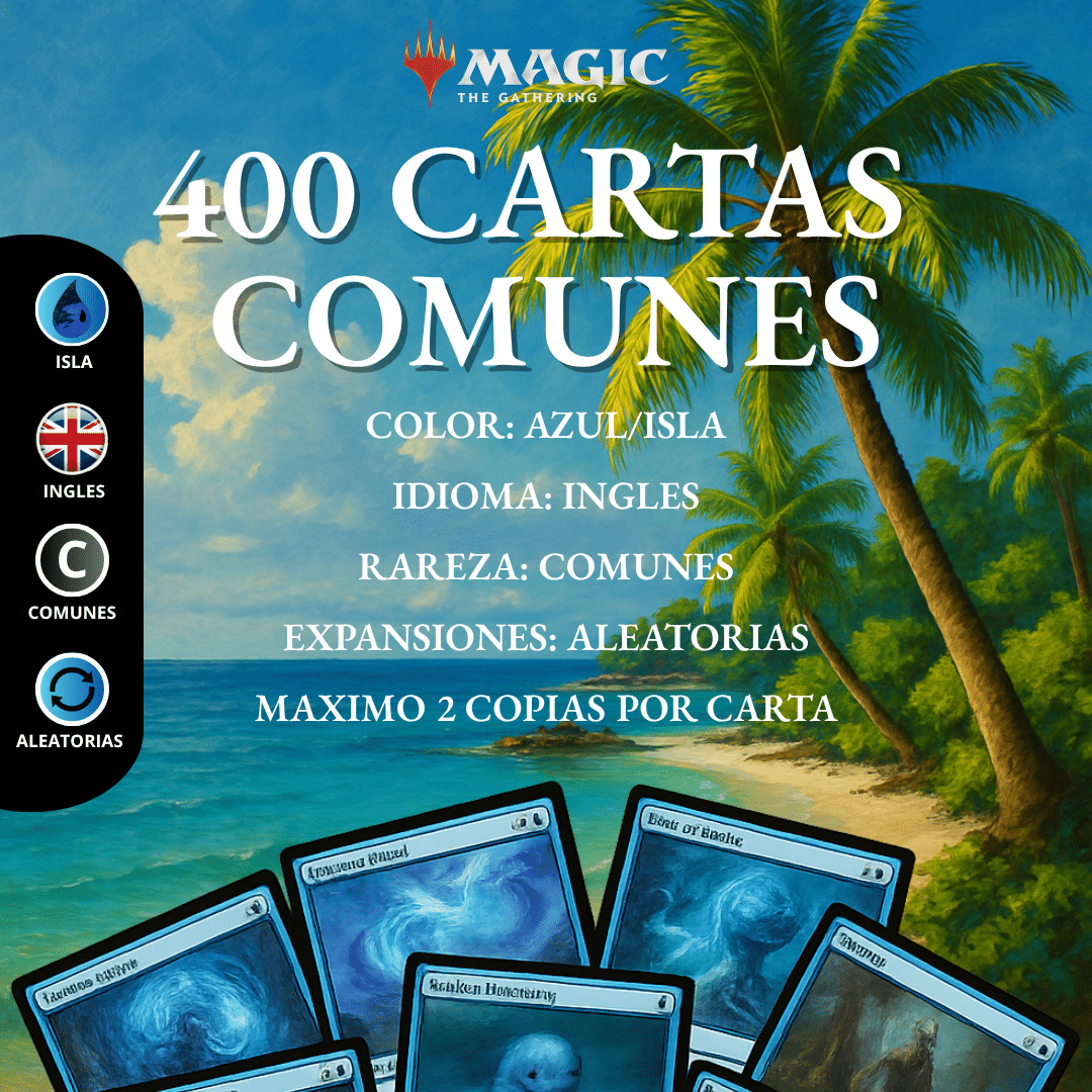 LOTE DE 400 CARTAS VARIADAS COMUNES AZULES EN INGLÉS