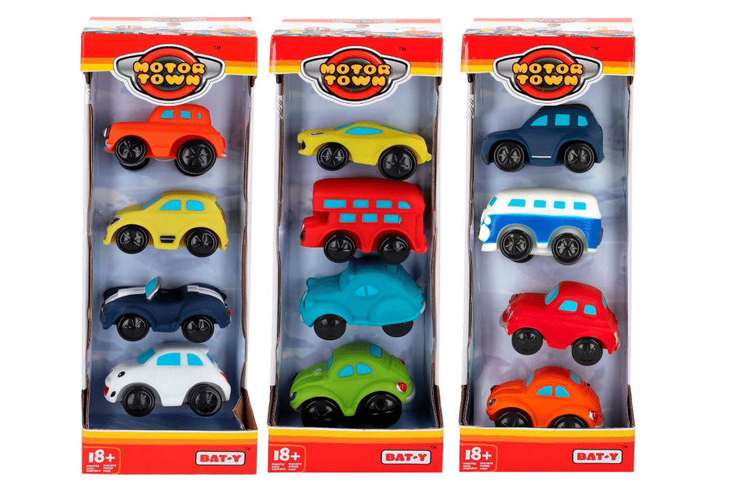 ¿En qué consiste? ¡Recorre la ciudad con los coches de goma de Motor Town! Pasea con tus mini vehículos de goma, la furgoneta, el autobús o el todoterreno ¿dónde vamos de paseo? ¿Qué incluye? Cada pack contiene 4 coches de diferentes colores y formas que simulan marcas conocidas. ¿Qué aprenden? Con este pack de vehículos los niños desarrollan la orientación espacial, la habilidad manual y la motricidad global.