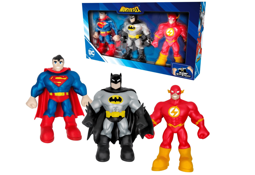 ¡Únete a la batalla con el increíble Monterflex DC pack de 3! Este emocionante set incluye a Superman, Batman y Flash, tus héroes favoritos para la acción. Personajes elásticos y resistentes.