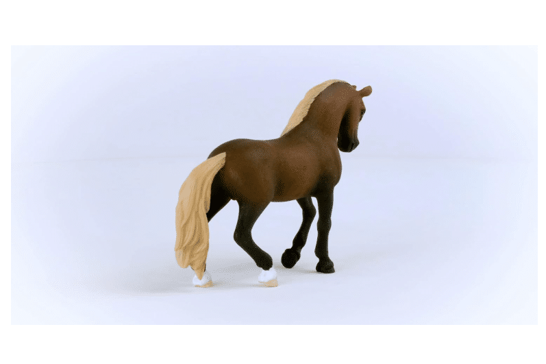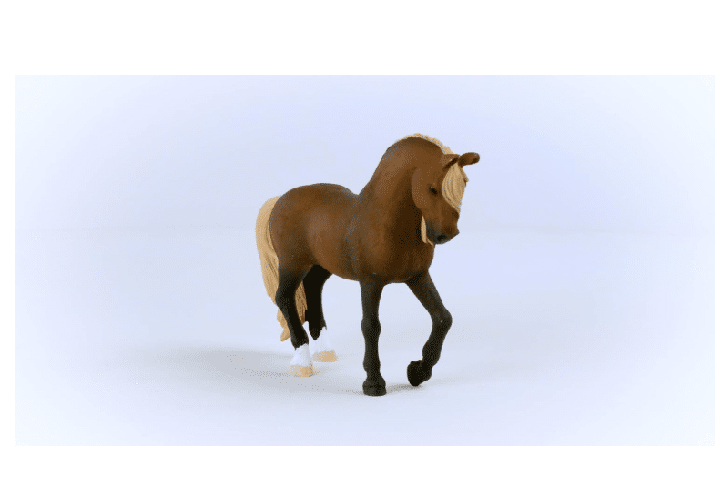¡Este orgulloso semental Paso Peruano se pasea con elegancia por la granja! Su espesa crin y su grácil cuello arqueado atraen todas las miradas. Sus bonitas orejas están erguidas y atentas.