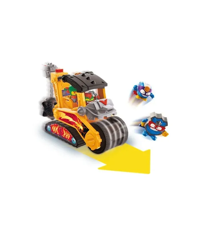 Los villanos saben cómo dar respuesta a los héroes con su Battle Vehicle Demolition. Utiliza la bola de demolición para destruir todo a tu paso y apartar a aquellos enemigos que se te pongan por delante ¡Y con la apisonadora delantera te abrirás paso lanzando a los héroes por los aires! Incluye 2 Superthings exclusivos ¡para que nadie te pare! Colócalos en las 2 cabinas disponibles en el vehículo: una para controlar la bola de demolición y la otra para la apisonadora. Avanza hacia delante o hacia atrás, ¡tú eliges el ataque a usar!