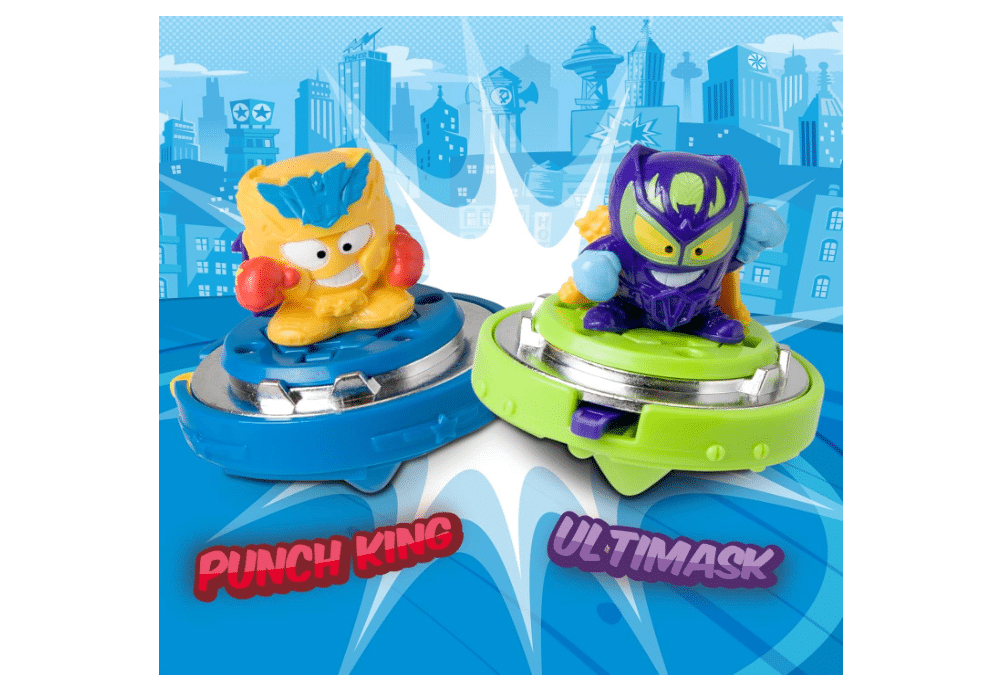 El set incluye una arena, dos Battle Spinners exclusivos y dos SuperThings exclusivos. Además, cuenta con un marcador para llevar la cuenta de los puntos durante la competición. Existen diferentes modelos disponibles, que se venden por separado y se surtirán según existencias.