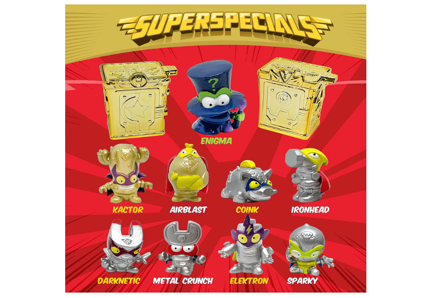 Consigue a los 9 SuperThings exclusivos de la serie 1. Enigma (ultrararo), Air Blast y Kactor (dorados), y los plateados Ironhead, Coink, Metal Crunch, Darknetic, Sparky y Elektron.