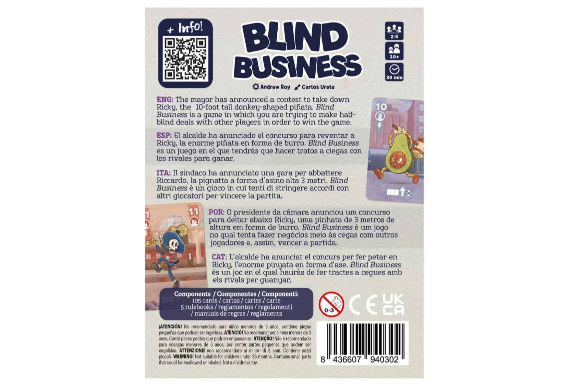 ¡Ven a disfrutar de las fiestas de Ricky Town! Hay un gran premio en juego, pero para ello deberás contar con la ayuda de miembros de diferentes gremios de la ciudad. Para avanzar a tus rivales deberás hacer tratos a ciegas con ellos con el objetivo de conseguir las mejores cartas. Blind Business es un juego de partidas rápidas y diversión a raudales en el que el faroleo será clave para ganar. ¡Demuestra que eres el mejor de Ricky Town haciendo tratos a ciegas!