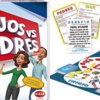 Hijos vs Padres es el juego de enfrentamiento para toda la familia en el que los hijos compiten contra sus padres para ver quién consigue la supremacía en casa. Pero no solo está en juego el derecho a fanfarronear, sino que cada equipo debe hacer una apuesta antes de que el juego empiece. ¿Qué estáis dispuestos a hacer si perdéis? ¿Lavar los platos? ¿Invitar al otro equipo a una noche de cine? Utiliza el marcador de borrado en seco y el tablero de apuestas para escribir las apuestas, y que empiece la competición. Cada equipo debe leerle preguntas sobre su generación al otro equipo. Según vayáis acertando preguntas, debéis moveros por el tablero. Si caéis en una casilla de desafío, tendréis que competir con el otro equipo en un desafío frenético y alocado. Si sois los primeros en llegar al final del tablero, deberéis superar un desafío final para ser coronados como ganadores y disfrutar de la apuesta que acabáis de ganar. En esta noche de juego en familia las apuestas son más fuertes que nunca, y también la diversión. De 2 a 6 jugadores, a partir de 8 años.