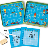 El interior de las 2 partes de la caja de lata de almacenamiento se usa de tablero de juego, uno para cada jugador, coloca tus barcos piratas e intenta hundirlos el del contrario.