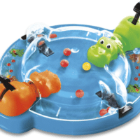 Esta versión de viaje del clásico juego del Tragabolas tiene 2 hipopótamos hambrientos y un montón de bolitas para comer.