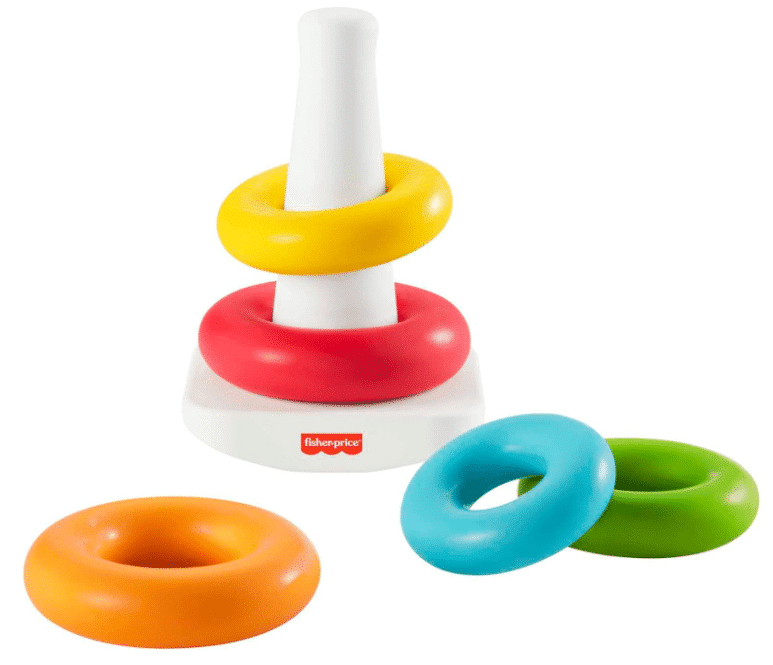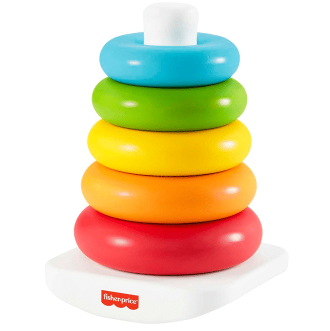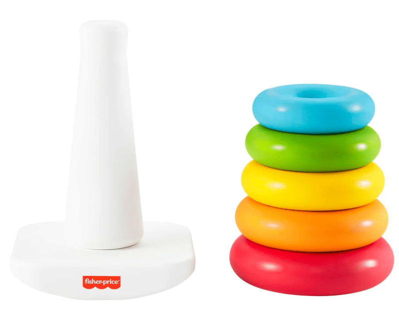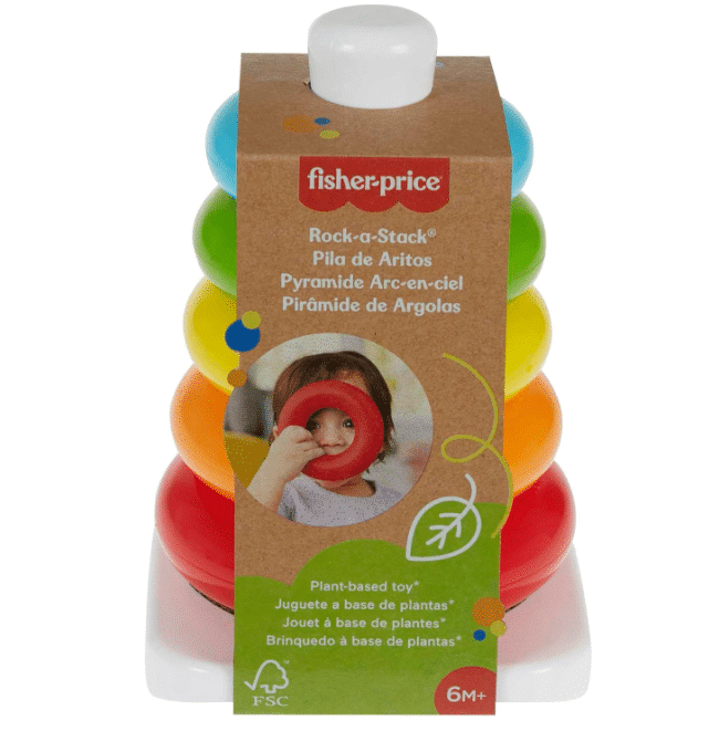 El juguete Pirámide balanceante de Fisher-Price, fabricado con materiales vegetales*, ofrece a los bebés la clásica diversión de apilar aros. Cuenta con una base que se balancea y 5 aros de colores que las manitas de los más pequeños podrán agarrar y apilar. Al apilar los aros, el bebé desarrolla la coordinación óculo-manual y comienza a entender el concepto de tamaño mientras ordena y apila los aros del más grande al más pequeño.