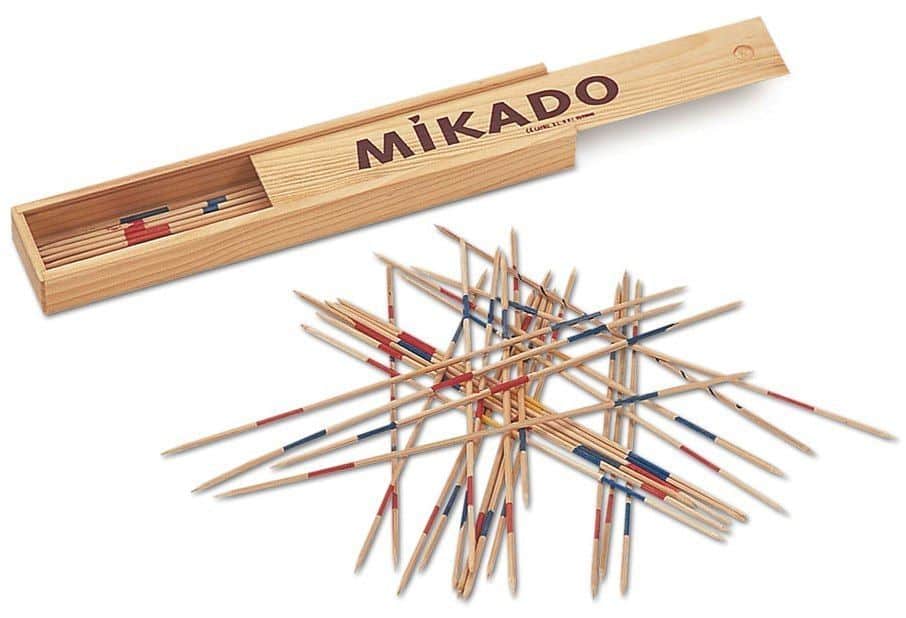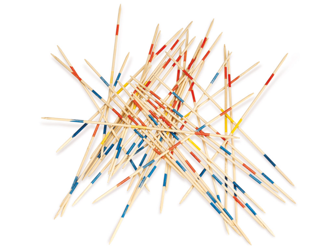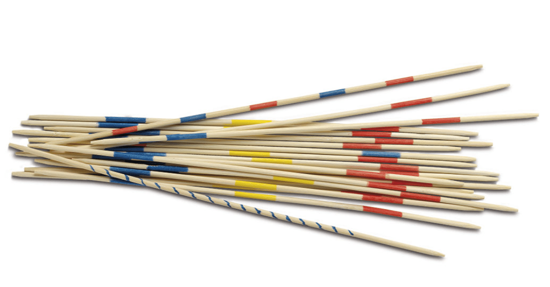 Juego de los palillos chinos, coge los palillos en un mazo y déjalos caer sobre la mesa por turnos ir cogiendo sin que se muevan los demás. Se trata de un juego de destreza y habilidad con el movimiento de la mano.