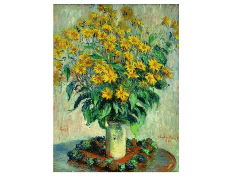 Jerusalem Artichoke Flowers es una de las obras menos conocidas de Monet. Fue pintado en 1880 y ahora se puede encontrar en la Colección Chester Dale de la Galería Nacional de Washington.