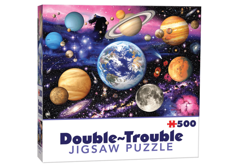 Puzzle Cheatwell Double Trouble de 500 piezas con imagen de los planetas del Sistema Solar.