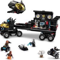 Este set con la batcueva sobre ruedas incorpora un batjet, un batquad, una moto, una moto acuática, un camión de juguete y 6 minifiguras de personajes de las películas de Batman: Batman, Batgirl, Nightwing, Mr. Freeze, Man-Bat y Tigre de Bronce.