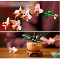 Esta réplica que parece real se compone de 5 orquídeas en flor y algunos capullos, así como de hojas para aportar autenticidad. Cuenta también con una maceta en terracota claro sobre una peana que imita la madera para que los floristas aficionados puedan decorar su hogar u oficina con una delicada creación LEGO que lleva la tranquilidad de la naturaleza a cualquier espacio.