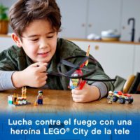 Te espera una aventura trepidante y divertida con un magnífico helicóptero que vuela con cable de lanzamiento, un quad de rescate y una tubería en llamas, además de 3 minifiguras de un experto piloto de bomberos, un trabajador propenso a los accidentes y la jefa de bomberos Freya McCloud, heroína LEGO City de la tele.