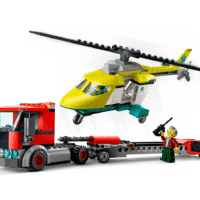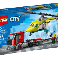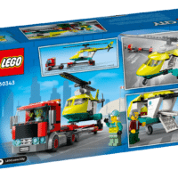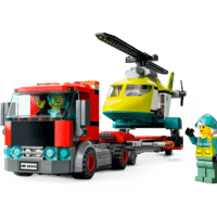 El juego LEGO® City Transporte del Helicóptero de Rescate (60343) contiene un inconfundible camión rojo con remolque de plataforma articulado y luces de advertencia desplegables, así como un helicóptero de rescate de juguete. Bastará con combinarlos con las minifiguras incluidas de un conductor y una piloto, y con un toque de imaginación, para pasarlo genial durante horas.