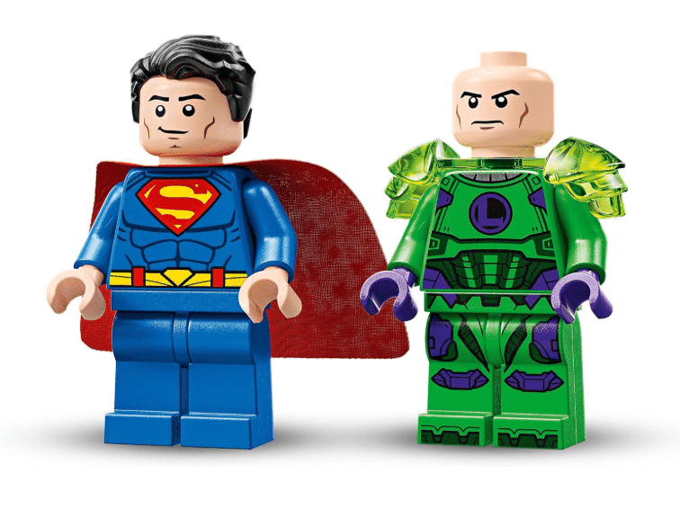 Este juego LEGO DC basado en Superman incluye 2 minifiguras: Superman, con una capa de tela y una cabeza reversible con expresiones alternativas, y Lex Luthor, con un cañón que dispara y un cristal de Kriptonita. La armadura robótica construible cuenta con brazos, piernas y dedos móviles. El torso se abre y contiene una cabina con espacio para sentar a la minifigura de Superman. La armadura robótica lleva 2 propulsores ajustables en la espalda para “volar”.