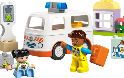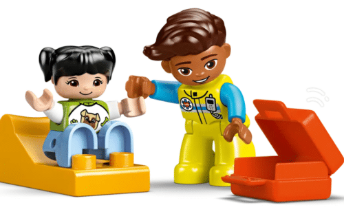 Un fantástico regalo para bebés que disfrutan con las actividades de aprendizaje social y emocional, este juguete creativo LEGO DUPLO se ha diseñado para ayudar a los peques a aprender sobre la empatía. Las instrucciones de construcción incluyen una rueda de juego impresa que permite a adultos y preescolares explorar las diferentes emociones de la chica. Los niños puedan usarla para expresar cómo se sienten cuando no se encuentran bien o al ver una ambulancia. También pueden desarrollar el pensamiento lógico para construir una secuencia de acontecimientos y la motricidad fina al abrir el techo de la ambulancia de juguete y colocar dentro la figura de la chica en la camilla reclinada.
