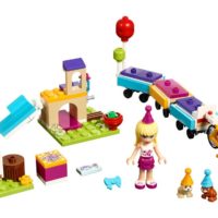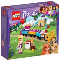 Sube al Tren de fiesta LEGO® Friends con Stephanie y los hámsters. Tira de la bicicleta con los vagones para transportar a los animales y los accesorios para la fiesta. Incluye una pequeña área de juegos con un tobogán para entretener a los hámsters. Incluye una minimuñeca de Stephanie y 2 hámsters.