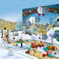 El calendario incluye un tapete y módulos conectables y reorganizables para crear el parque. Los niños encontrarán la caja de adornos navideños y decorarán el árbol con piezas de colores.