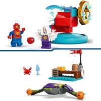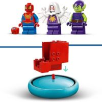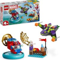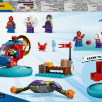 Este set inspirado en Spidey y su superequipo, de Disney+, incluye una minifigura de Spidey y su aerodeslizador arácnido con hélice giratoria y cabina abatible, una minifigura del Duende Verde con su deslizador (equipado con proyectiles-calabaza) y una minifigura de Spider Fantasma con su gran telaraña dorada. Cuenta también con la figura de Trace-E, la amiga robot de Spidey, así como con accesorios marinos y un simpático cangrejo. El set contiene un ladrillo para principiantes que representa la cabina para facilitar la construcción e intuitivas instrucciones en forma de colorida historia visual.