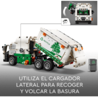Camión de juguete para niños y niñas mayores de 8 años: el Camión de Residuos Mack LR Electric LEGO Technic está equipado con un cargador lateral para enganchar, elevar y volcar los contenedores de basura