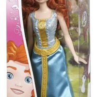 Mérida luce un bonito vestido azul con detalles dorados y una encantadora corona dorada.