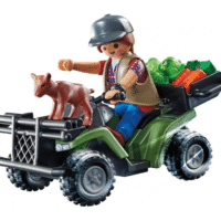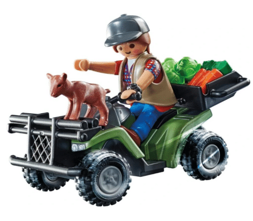 El set es perfecto para los pequeños amantes de la naturaleza, incluye un granjero, un quad, verduras y un animal para un emocionante juego de roles.