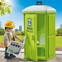 Con la ayuda del gancho de la grúa, el Aseo portátil se puede levantar fácilmente y transportar. Con los juegos de construcción de PLAYMOBIL City Life, los niños y niñas a partir de 4 años pueden sumergirse en historias cotidianas. Combina el Aseo portátis con el Camión de residuos con contenedor (71431) para aún más diversión de juego.