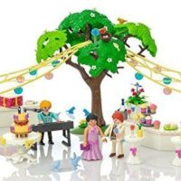El jardín está decorado con guirnaldas, que se sostienen en el árbol y en los enrejados. Incluye regalos y un delicioso buffet esperan la llegada de los recién casados. Con piano, micrófono, mesas decoradas con floreros y una maceta. Incluye 3 figuras. El anillo de corazón lo puedes usar.