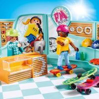 Además de la escalera hay una rampa que permite que los cochecitos y las sillas de ruedas accedan a la tienda. La rampa se puede poner fuera de la tienda y utilizarse para hacer skate. Las tres bicicletas son solo compatibles con figuras adultas. Los patinetes de línea se pueden acoplar a la figura masculina y a la figura femenina rubia.