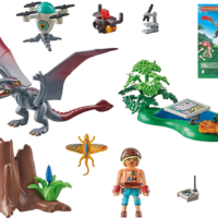 Utilizando el dron flexible con cámara, captura tomas cercanas sin molestar al gran reptil volador. Más tarde, realiza investigaciones adicionales con el microscopio. ¡Qué día tan exitoso de exploración! El mundo de los dinosaurios de PLAYMOBIL invita a niñas y niños de 4 años en adelante a sumergirse en emocionantes aventuras de juego de roles y revivir la fascinación de estos gigantes reptiles en casa.