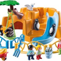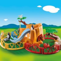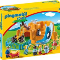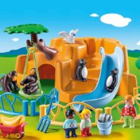 El zoo consiste en una gran roca que combinada con los seis elementos de la cerca forman diferentes espacios para los monos y pingüinos. Dos rocas separadas están dentro de la roca, accesibles desde dos entradas diferentes. El columpio para monos se puede enganchar al árbol. La carretilla solo se puede empujar por una figura adulta del 1.2.3 (las figuras de niños no pueden debido a su altura).