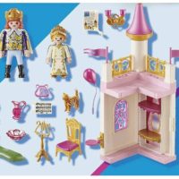 1 príncipe, 1 princesa (figura de niño), 1 esquina de un castillo con estante giratorio para cuenco, jarra y lira y mucho más, Adecuado para el juego complementario 70504.