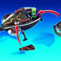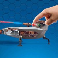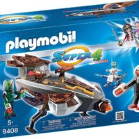 Una fantástica nave. El techo se puede quitar. En la parte dispone de una pistola que dispara y que además gira. La nave tiene espacio para almacenaje. Incluye a la figura de Gene acompañada de una figura de Sykroniano, ambos protagonistas de la serie de SUPER 4.