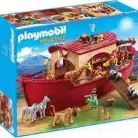 El Arca de Noé flota y es compatible con los motores submarinos (#7350 o #5536). La rampa se puede guardar debajo del tejado. Con dos ruedas debajo del casco para rodar el barco en el suelo.